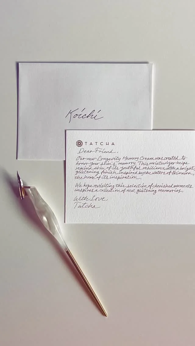 Luxury LA calligraphy services including on-site live event calligraphy, engraving, invitation addressing, and bespoke lettering for brands, events, and weddings.