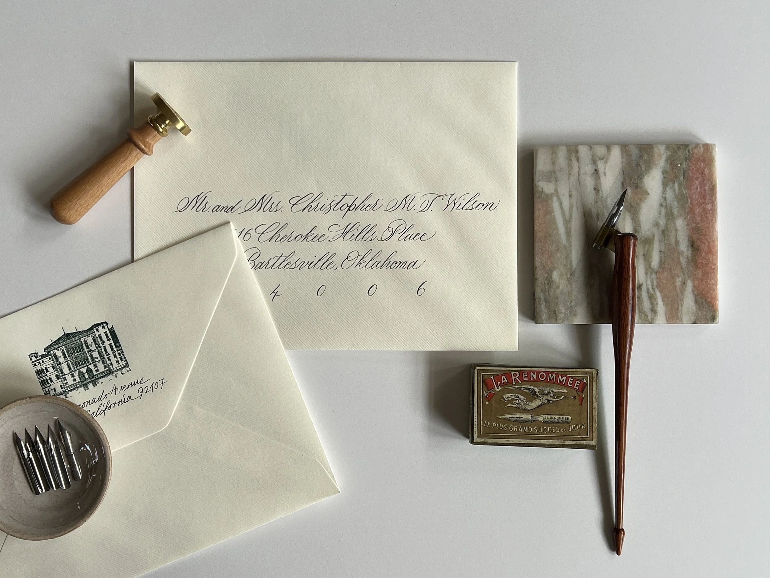 • I provide expert calligraphy services for weddings, events, and brands across fashion, beauty, and entertainment. From hand-addressing invitations for weddings and product launches to creating custom designs for special occasions, I bring elegance and sophistication to every detail. Let me make your invitations unforgettable with timeless, handcrafted calligraphy.
